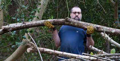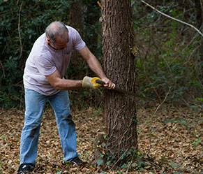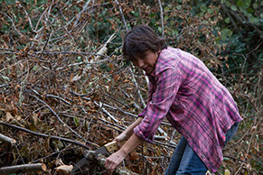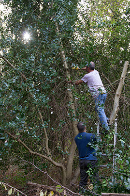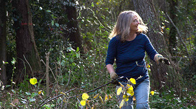 Sous l’œil vigilant de Suzanne, les bûcherons de services sont autorisés à couper ce dernier houx qui fait trop barrage à la lumière.