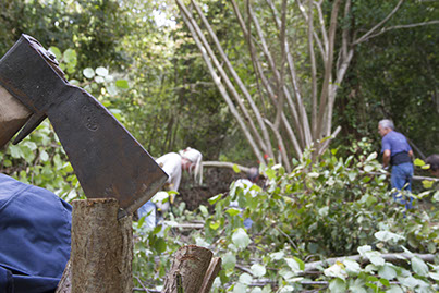 L'idée est qu'un groupe de personnes attirées par l'agriculture à petite échelle, s'organise autour d'un terrain forestier pour le transformer en jardin.